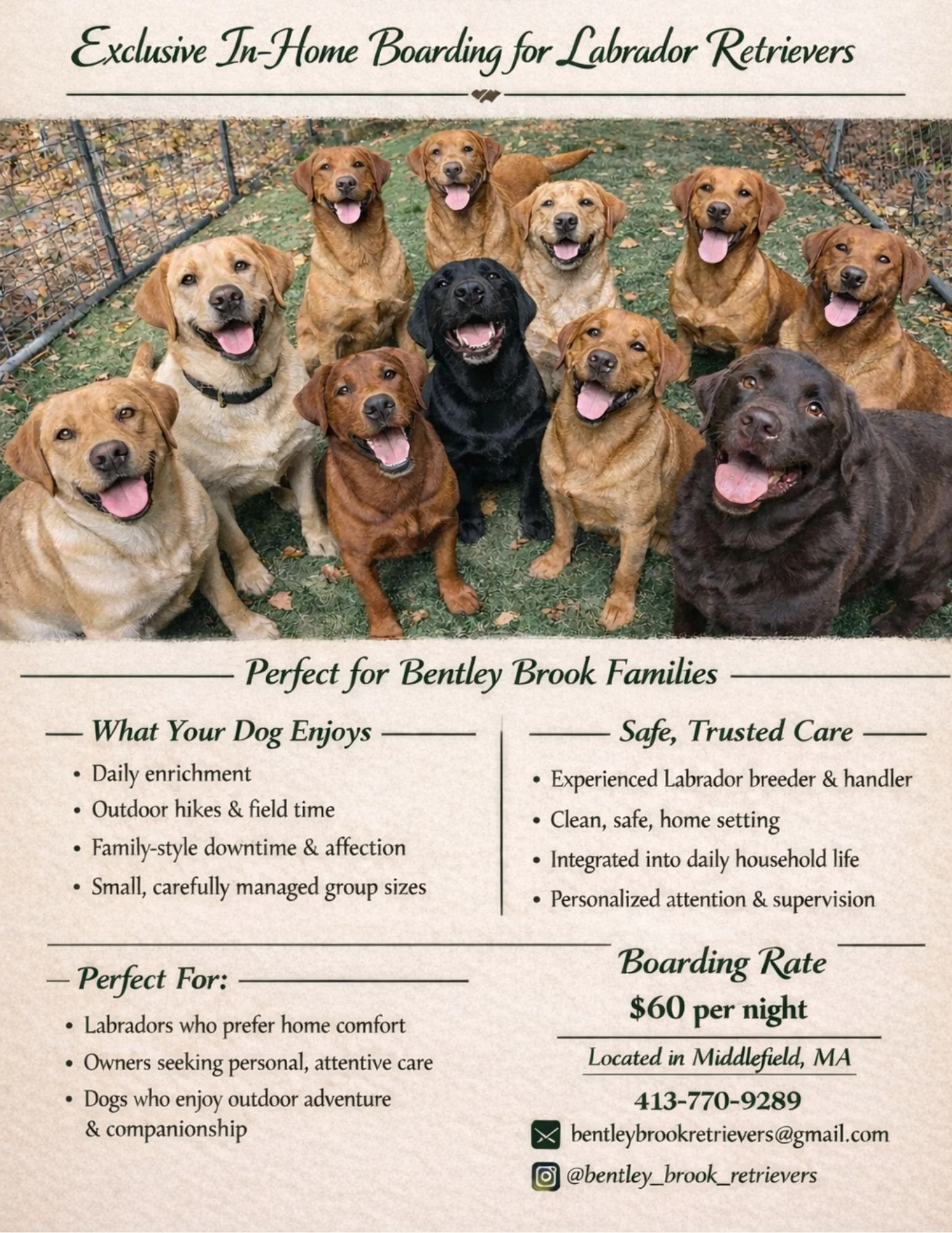 Fill out the form below to inquire about our boarding services! Availability is limited to 2 guests at a time to ensure everyone has an enjoyable experience.